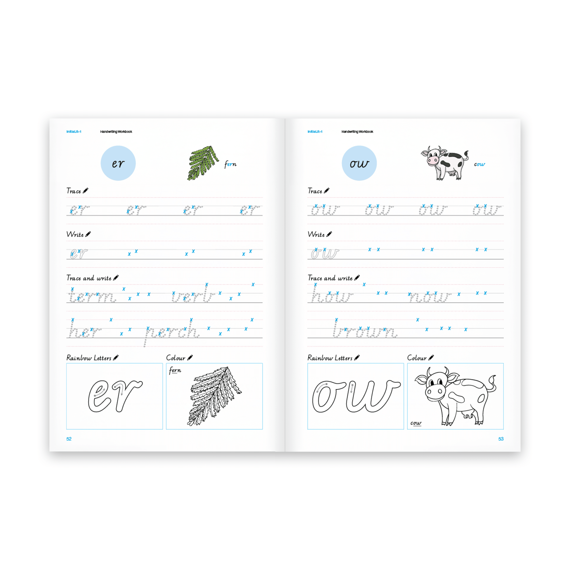 A pack of five student workbooks containing handwriting worksheets for Year 1 (two worksheets per letter or digraph), using Victorian font and handwriting lines (featuring one solid line). Handwriting worksheets are included as a downloadable resource with the InitiaLit–1 Kit, however these workbooks can be ordered as a more convenient alternative to individual worksheets and provide additional sheets for practice. Enough packs will need to be ordered to cater for the total number of children in the classroom.