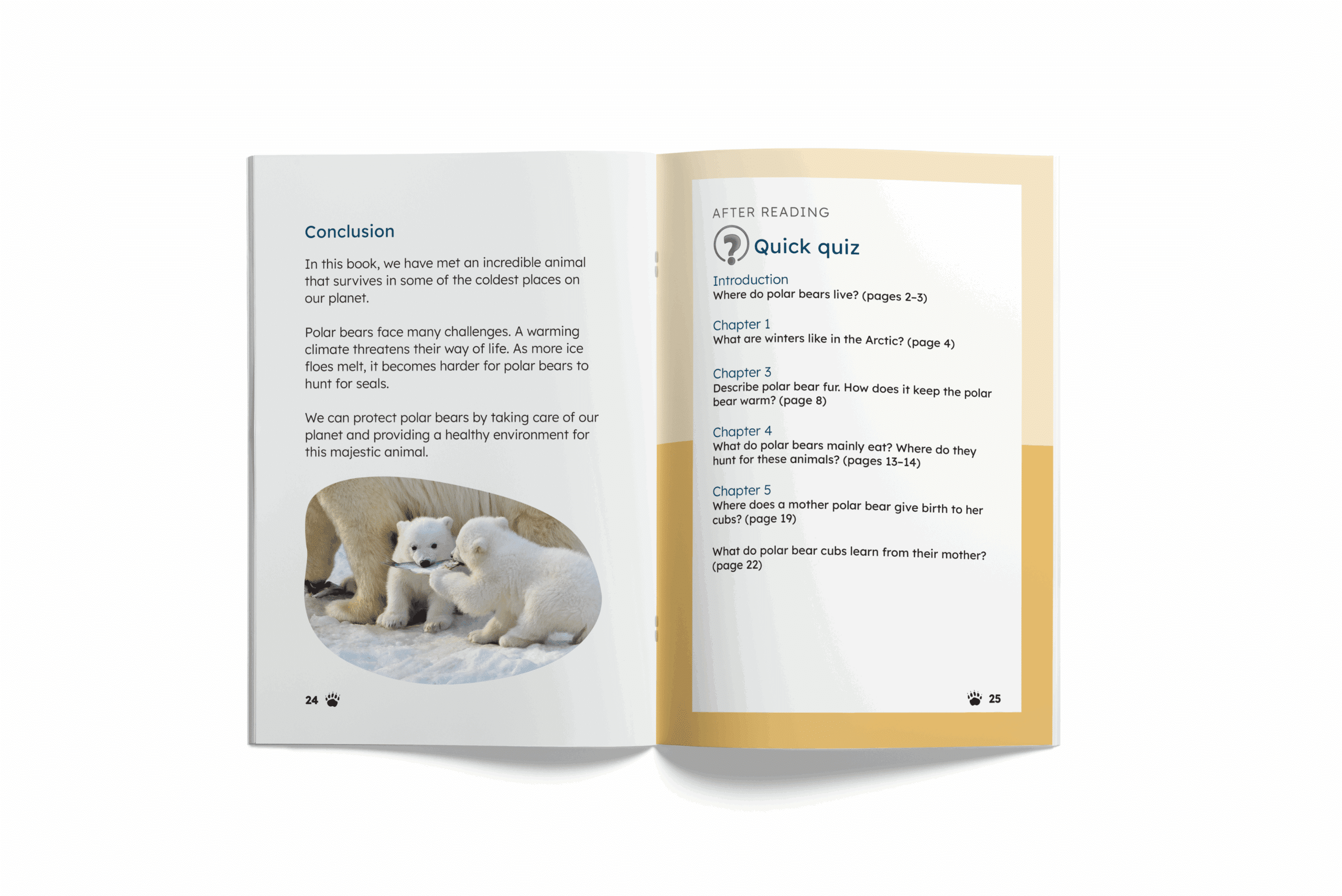 Each non-fiction book contains some preview activities, and comprehension activities at the end of the book, including a quick quiz and discussion prompts to prepare for a simple writing task.